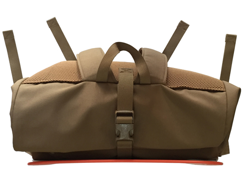 ■バックパックには、堅牢性、耐久性、耐水性、紫外線耐性、赤外線遮蔽性に優れた、原糸染色コヨーテカラーのミルスペック・500デニール・コーデュラナイロン生地を使用しています。ウェビングなどにも、長寿命のミルスペック素材を使用しています。